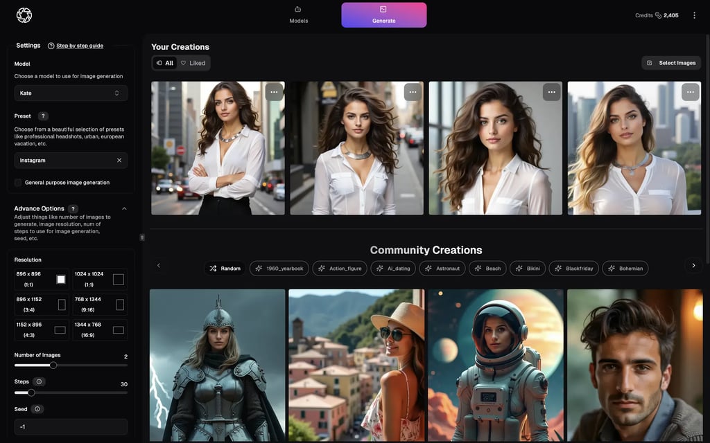 Experience the future of image generation with our cutting-edge features: create your own character using selfies, get AI-powered prompt assistance, upscale your images to perfection, and more