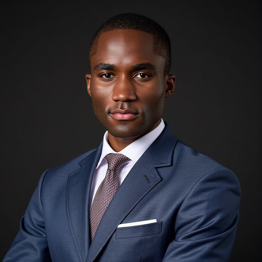 Confident man in suit, city backdrop, professional, bokeh.