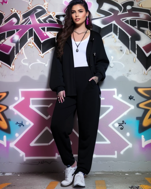 Punk style woman, graffiti alley, intricate details, noir vibe.