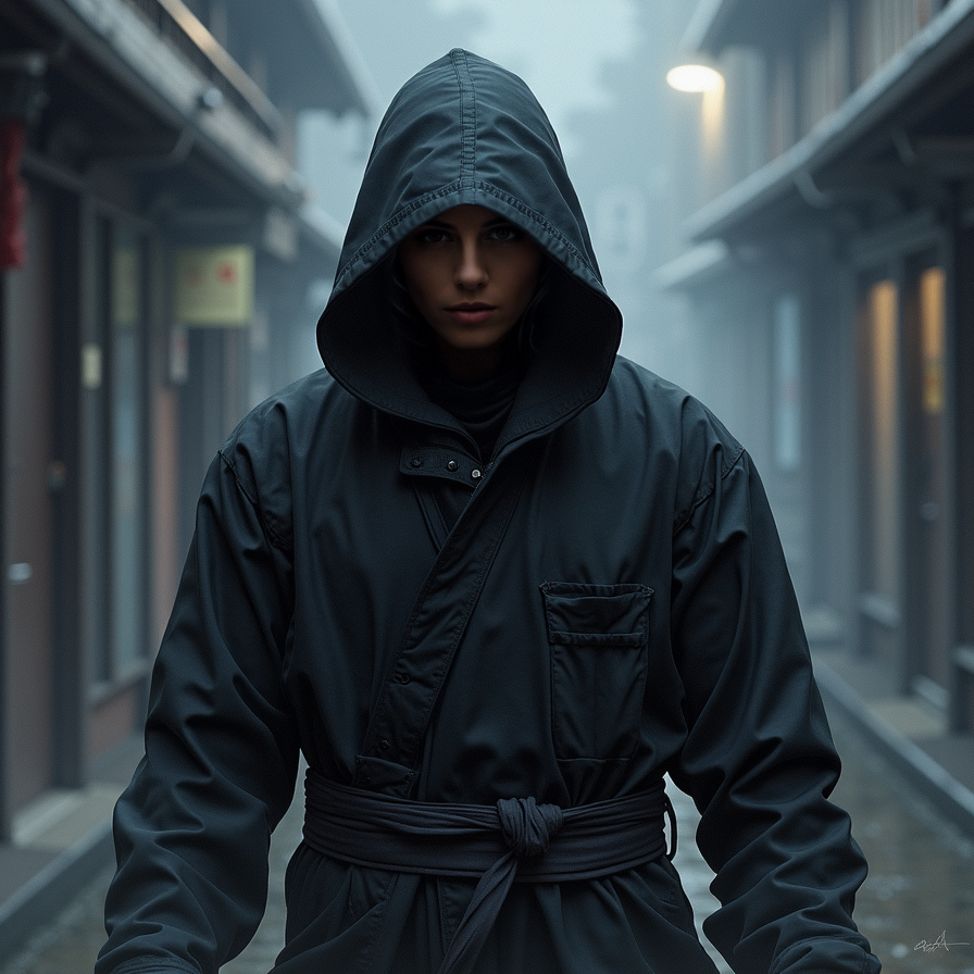 Ninja woman, stealthy movements, shadows, detailed, realistic.