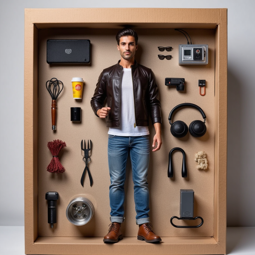 Man with gaming controller, headphones, instant noodles, and a messy desk vibe