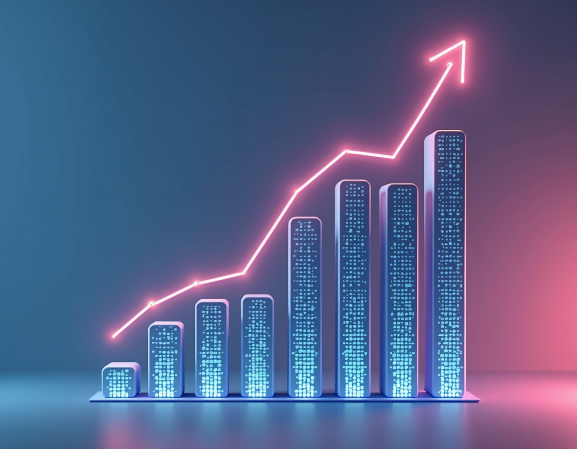 Illustration of a search trend graph showing rising interest in ‘AI headshot generator’ from 2023 to 2025, clean UI, upward trajectory, modern minimal style chart design