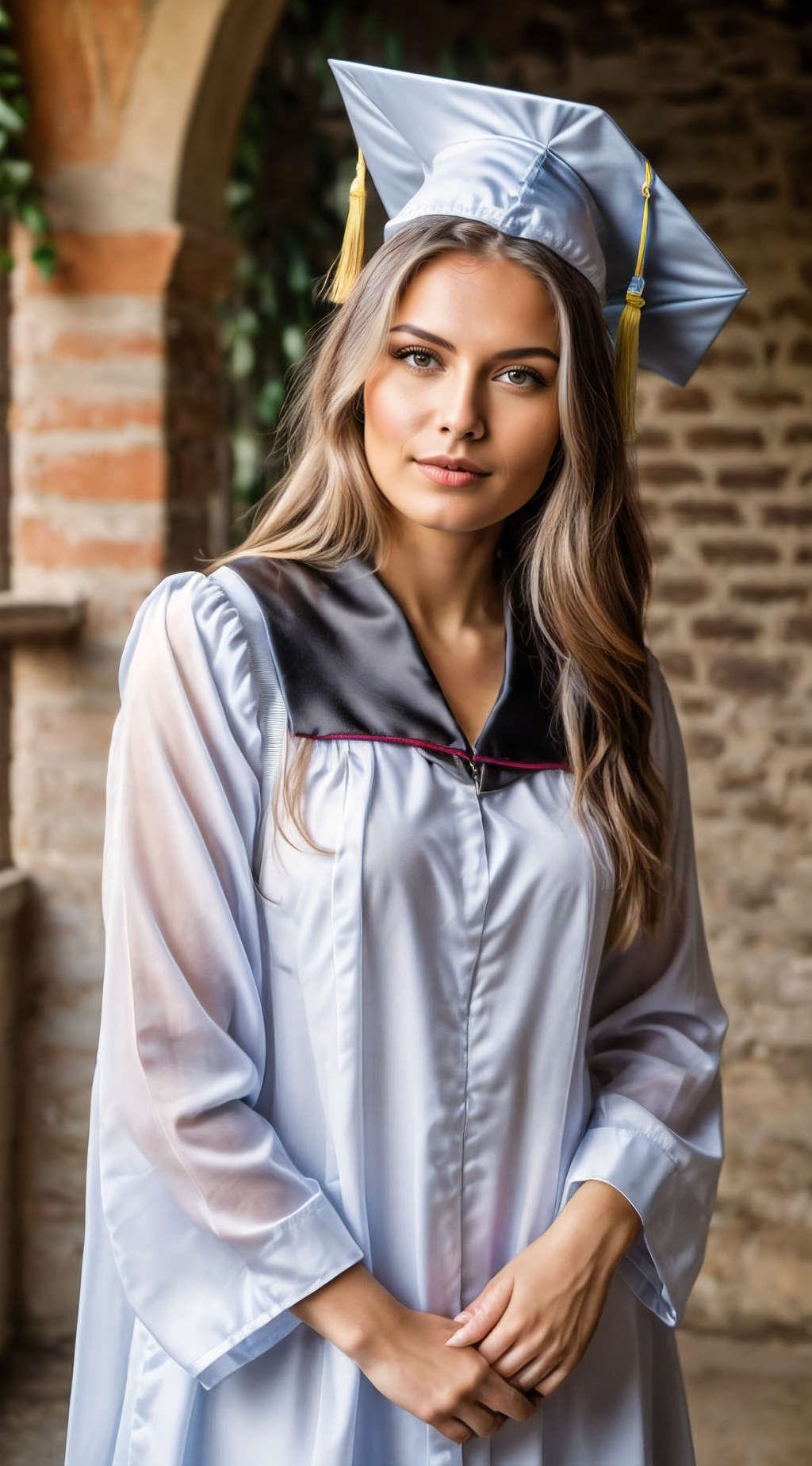 Graduate woman, academic regalia, celebrating achievement and mentorship.