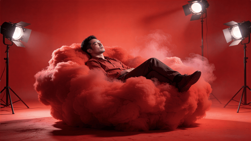 The entire subject (person + cloud) is perfectly centered in the frame,