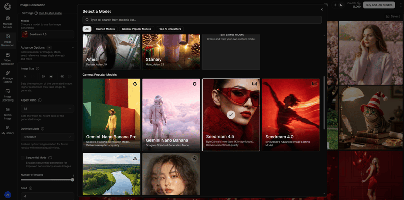 - Select Seedream 4.5 from the dropdown menu.